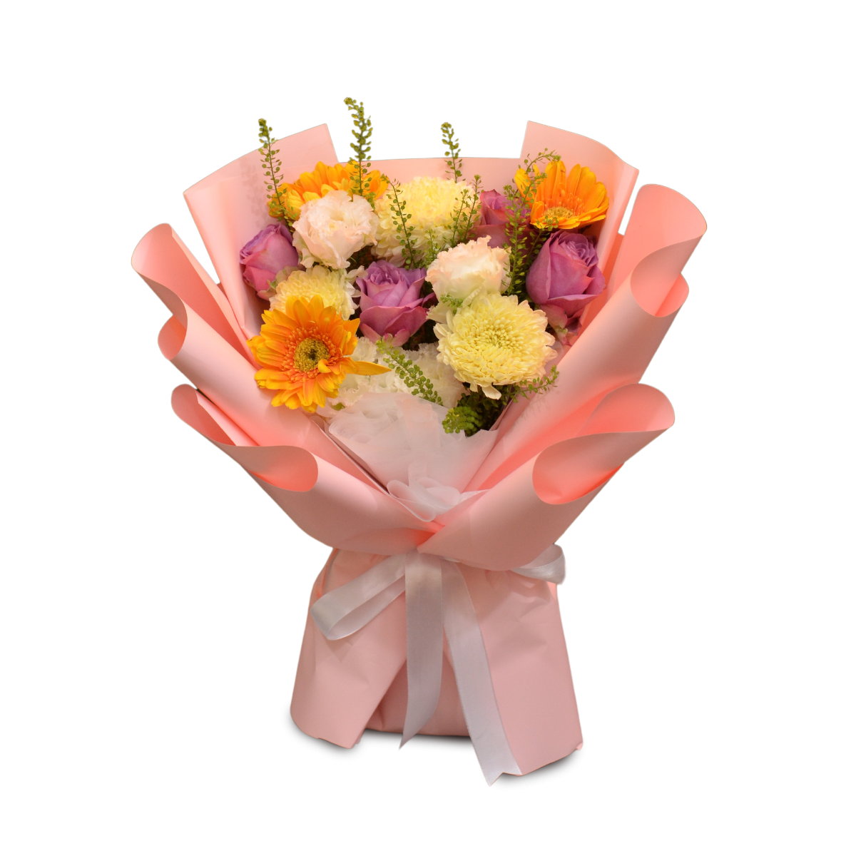 Bouquet "Adante" adalah pilihan sempurna bagi Anda yang ingin memberikan sentuhan elegan dan romantis pada berbagai kesempatan istimewa. Rangkaian bunga ini terdiri dari kombinasi bunga mawar merah muda, anyelir mini, mawar semprot merah muda dan merah, aster monte cassino ungu, krisan button hijau, dan eukaliptus berbiji. Semua bunga tersebut disusun dengan indah tanpa menggunakan pot, sehingga memudahkan penataan sesuai keinginan Anda.